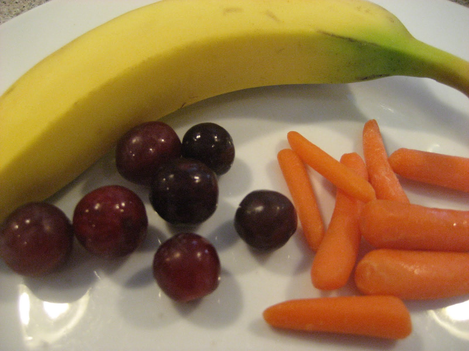 - small bananas, orange/apple slices, applesauce, diced peaches/pears, carrot/celery sticks, mandarin oranges